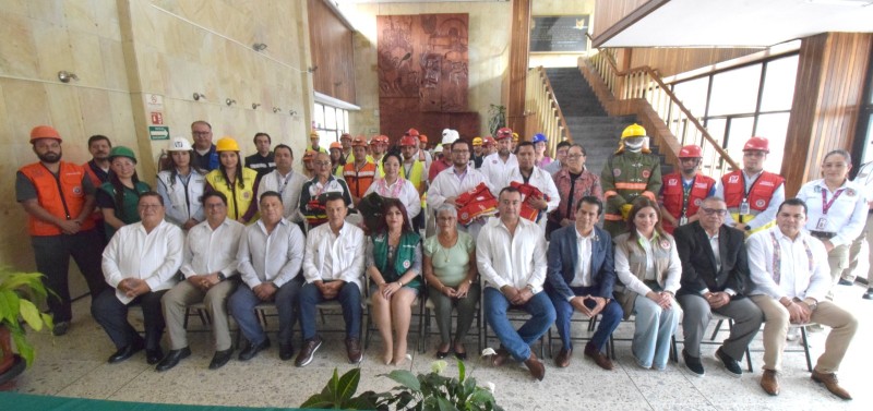 Entrega IMSS Veracruz Norte chalecos y equipo de bombero para Unidades Internas de Protección Civil